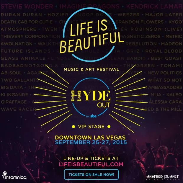 Join us at the Hyde Out VIP Stage for an exclusive experience while watching some of the biggest names in the music industry, including Stevie Wonder, Imagine Dragons, Kendrick Lamar, Snoop Dogg, Major Lazer, Porter Robinson, and more! For lineup information and to buy tickets and tables,