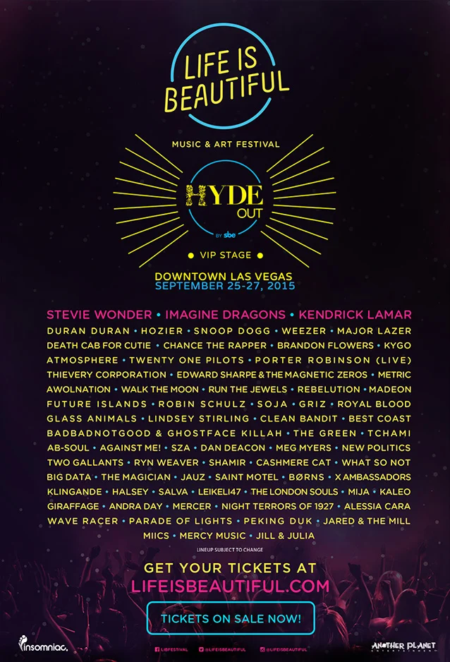 ***NEWS ALERT*** SEPTEMBER 25-27, 2015 LIFE IS BEAUTIFUL - MUSIC & ART FESTIVAL