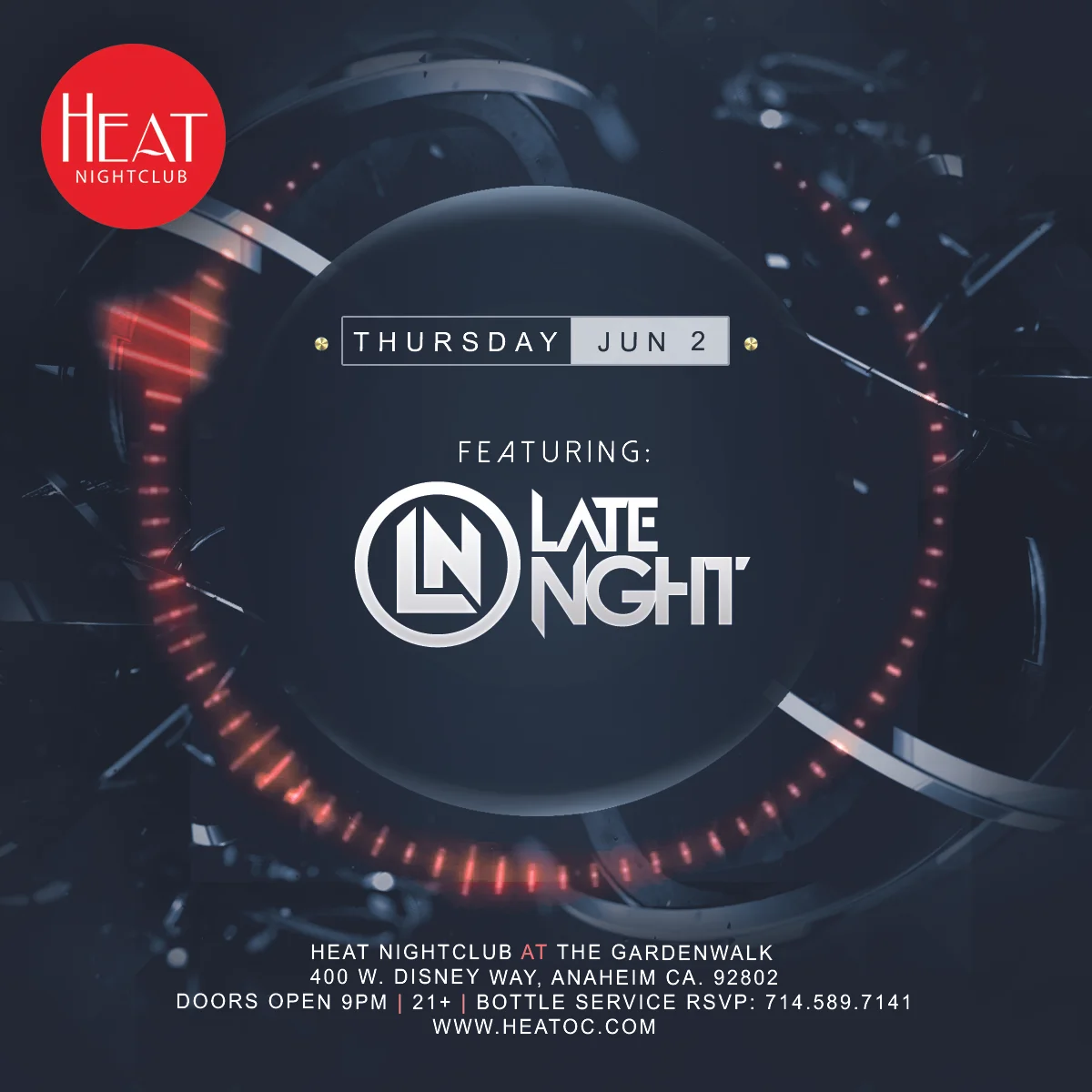 ***HEAT NIGHTCLUB TONIGHT*** Thursday, June 2, 2016 9:00 PM 21:00 Friday, June 3, 2016 2:00 AM 02:00 Google Calendar ICS ***News Update!!***This Thursday, (June 2, 2016) I will be DJing at Heat Ultra Lounge Nightclub!I have a limited guestlist!TEXT with first and last names for bottle service and VIP's! 323.909.8849